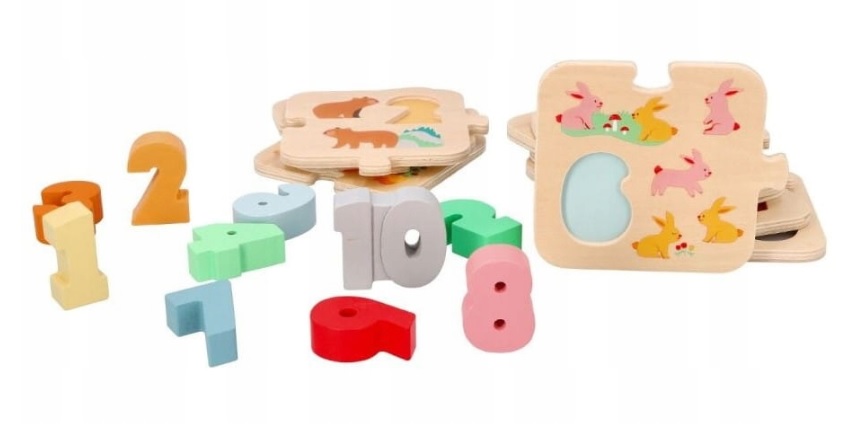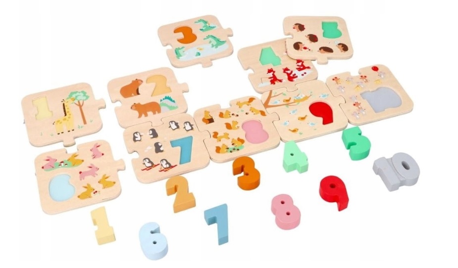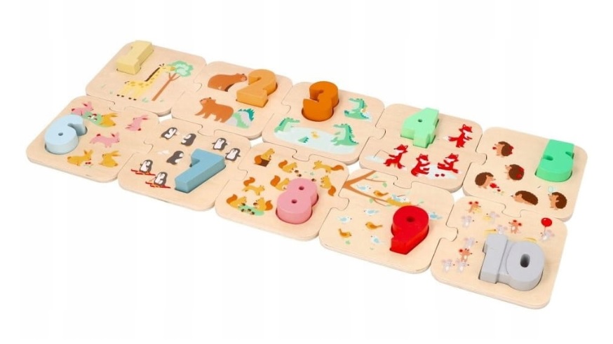 Дървен пъзел с цифри и животни, който ще помогне на вашето дете да научи числата от 1 до 10 и постепенно ще започне да брои.