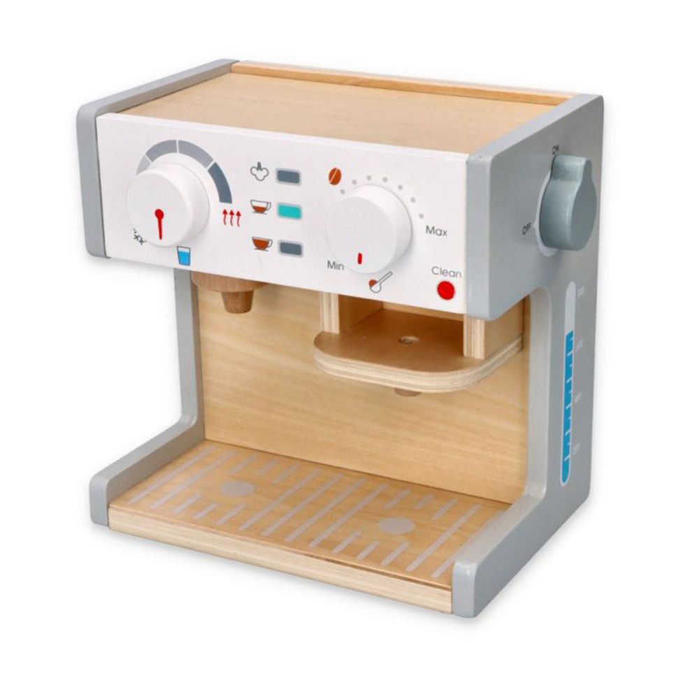 Дървена кафемашина с чашки, с която децата ще могат да приготвят кафе или чай за майка си, баща си или приятели в зависимост от предпочитанията им. Тази многофункционална кафе машина може да се използва за детска кухня, за игра в кафене или бензиностанция.