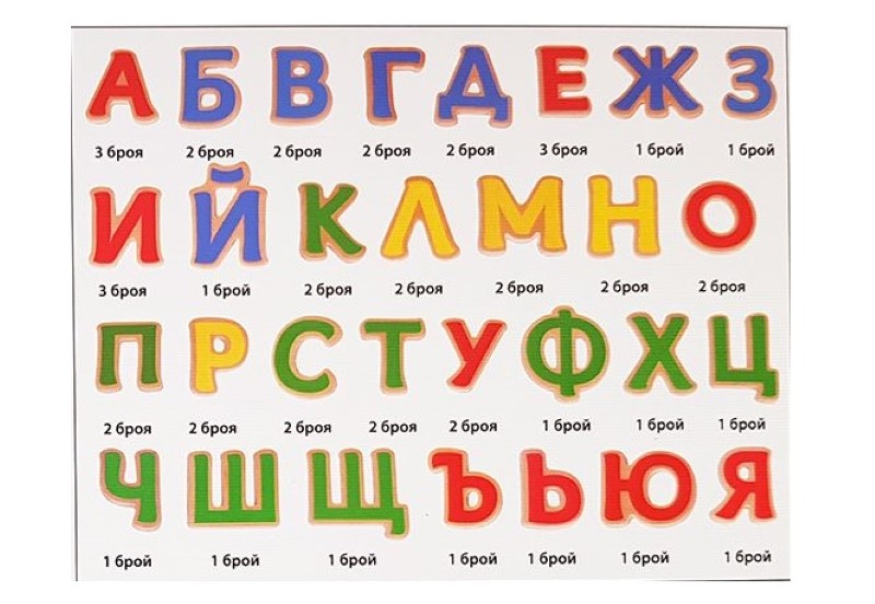 Дървени магнитни букви, Българската азбука