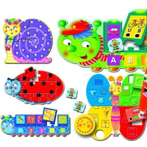 Игри: 1. Малките пчели (тренира паметта на децата), 2. Мемо игра с думи, 3. Игра за отгатване на думи с животни, 4. Бинго с животни, 5. Познай името, 6. Пъзел с калинки, 7. Игра с кръгчета, 8. Пъзел с охлюв, 9. Постройте къща, 10. Игра: Какво има в твоята къща?, 11. Гъсеница с азбука, 12. Интерактивна азбука, 13. Интерактивни думи, 14. Стоножка с числа, 15. Игра с числа, 16. Как се пишат числата?, 17. Пеперуда с форми и цветове, 18. Бинго с форми и цветове, 19. Познай цвета, 20. Познай формата.