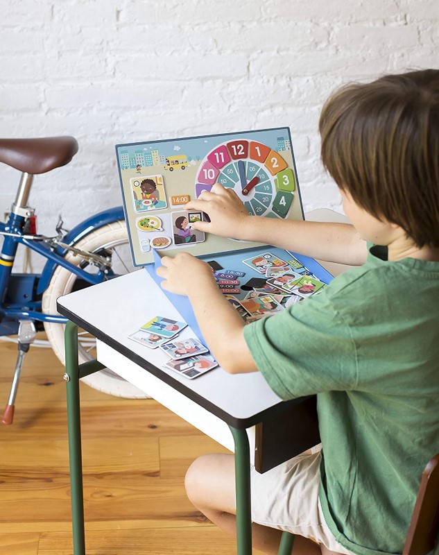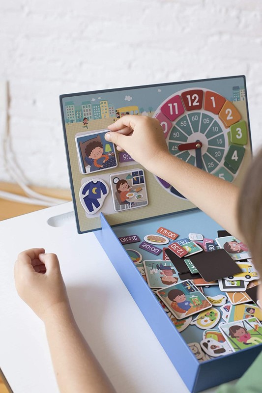 Тази забавна магнитна игра има за цел да помогне на децата да научат часовете и да свикнат с времевото разпределение на различните дейности в ежедневието.
