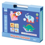 Удобната кутия с дръжка и магнитно затваряне се превръща в игрално поле с магнитна повърхност при отварянето й. В нея ще откриете карти с картинка и дума на английски. С помощта на магнитните буквички, децата трябва да подреди думичката от картите. Може да измисля и свои собствени, когато напредне с изучаването.