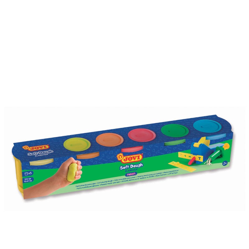 Комплектът съдържа 5 бурканчета мек пластилин (110 гр всеки) с неонови цветове, с които децата ще могат да се забавляват и моделират на воля.