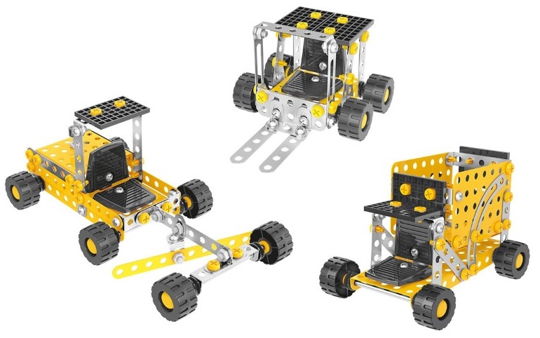 Съгласно инструкциите комплектът метална конструкция може да сглоби 6 модела: различни версии на багери, товарач, снегорин и камион. Както и други интересни модели, които детето може да измисли само.