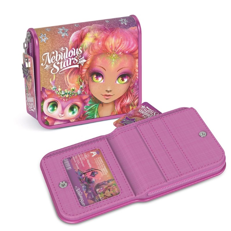 Детско портмоне с красив дизайн на звездната принцеса Хазелия от Nebulous Stars, което разполага с достатъчно прегради, за да може детето ви да прибере своите карти и пари на сигурно място, докато е навън.