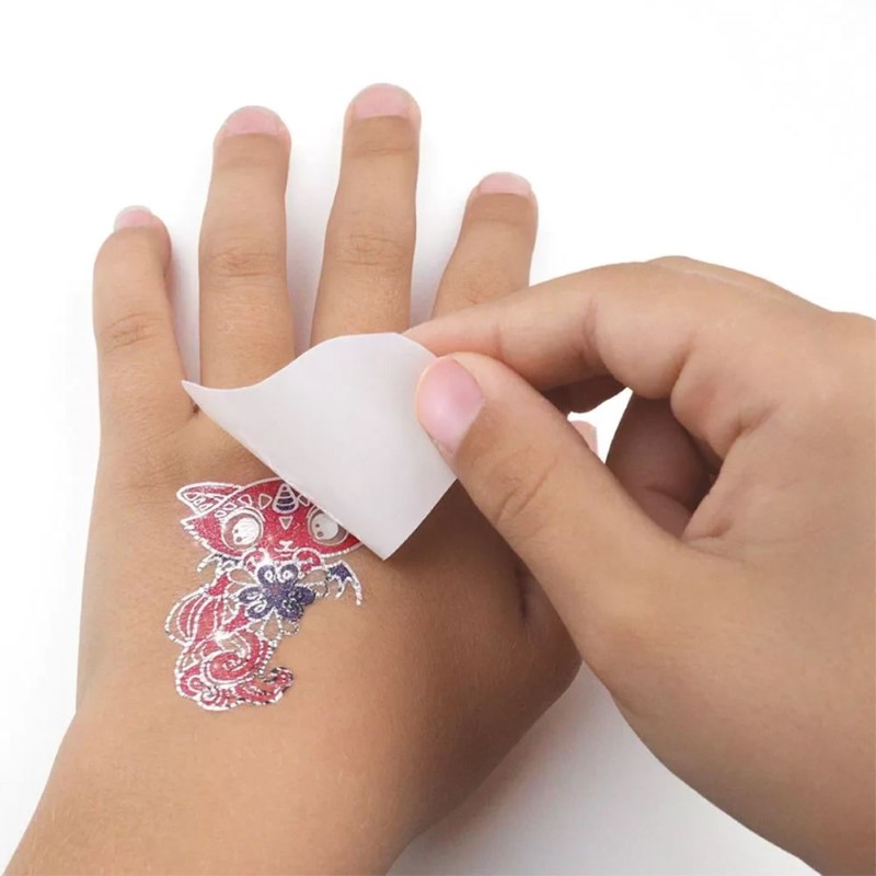 * Изберете татуировка, изрежете я премахнете защитното фолио;