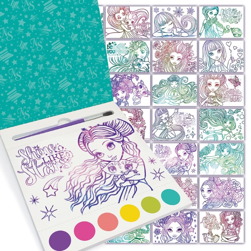 Детски творчески комплект, с който детето ви ще може да си оцвети и декорира 20 магически картички, с които ще зарадва свои близки приятелчета. Капнете малко вода върху цветните точки на съответната картичка и рисувайте на воля. боите могат да се смесват, така че да се създадат различни цветни нюанса. Комплектът ще вдъхнови децата да рисуват, научава ги да познават и смесват различните цветове, стимулира въображението, сръчността и тяхната концентрация.