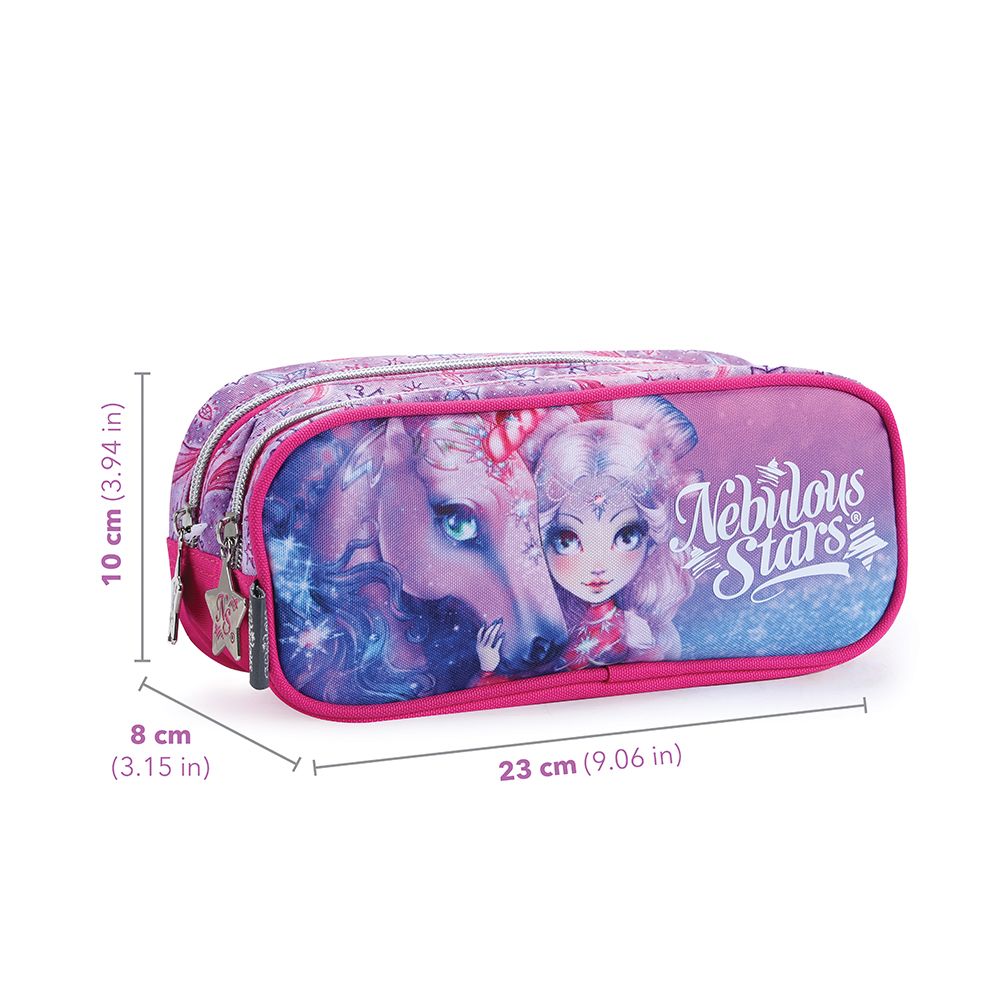 Ученическият несесер с 2 отделения от Nebulous Stars, с героите Небулия и Фирия, е чудесен избор за учениците, които обичат да бъдат организирани и в същото време да изразяват своята креативност. В двете отделения има достатъчно място за всички химикалки, моливи и други принадлежности, които могат да бъдат съхранявани безопасно и удобно.