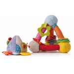 Интерактивна играчка за бебета и малки деца, изработена от висококачествен текстил съчетан с пластмаса. Мекият и плюш, ярките цветове, шумящите части, дрънкалките и гризалките по нея насърчават всички сензорни усещания при бебетата.