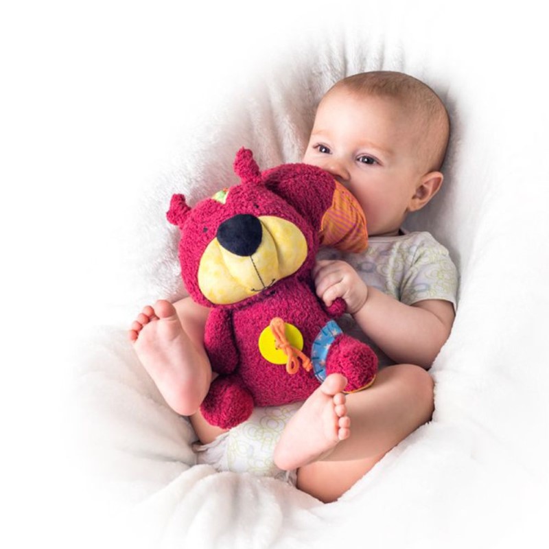 Активна играчка за бебета, изработена от мек плюш, ярки цветове, шумящи части, гризалка и дрънкалка. Тя е с клипс, който позволява лесно да се закачи за количка, легло или кошче. Меката на допир катеричка насърчава всички сензорни усещания на бебето.
