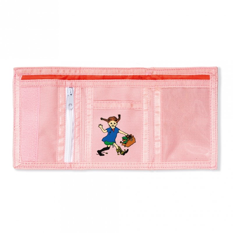 Детско портмоне с мотив и илюстрация на Пипи Дългото чорапче, което служи за съхраняване на банкноти и монети. Портмонето е с отделение за банкноти, отделение за монети с цип и три по-малки отделения за документи. Може да се комбинира и с раница от тази серия.