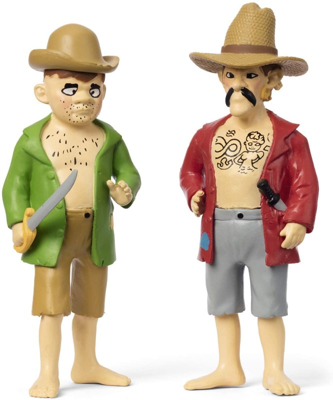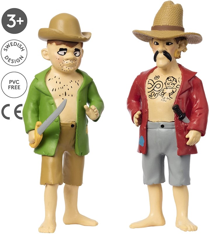 Комплект фигурки с пиратите Джим и Бък от Пипи Дългото чорапче. Вдигнете платната, Пипи е в морето с кораба Hoptoad! На остров Курекурерут Пипи се среща с гадните пирати Джим и Бък, които искат да се докопат до красивите, скъпоценни перли на острова. Пипи скоро ще сложи край на това!