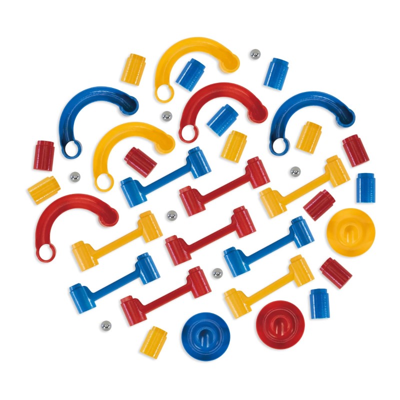 Тази писта се състои от няколко различни елемента, които може да се комбинират по различни начини с много предизвикателства и препятствия, за да се създаде непрекъснат път на топчетата. Това прави играта забавна и насърчава децата да усъвършенстват своите умения.
