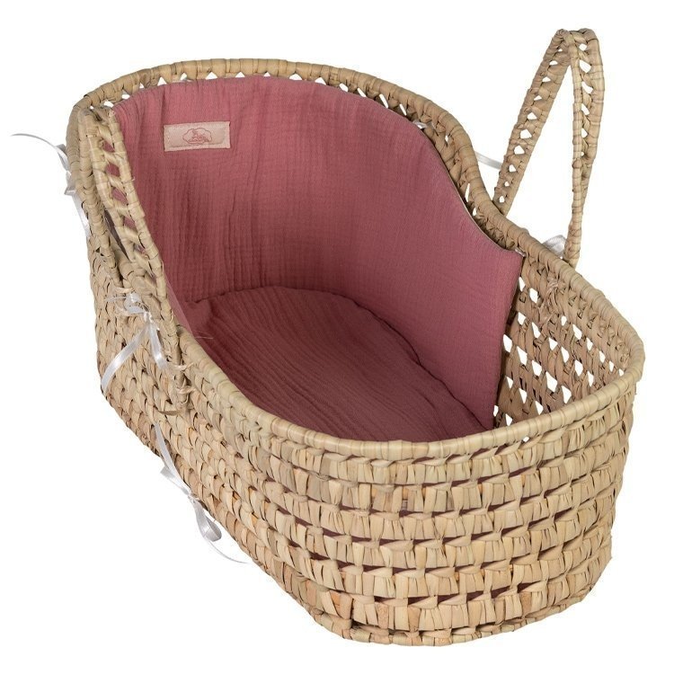 Плетен кош с розов протектор и мек матрак, в който куклата на вашата малка принцеса ще спи спокойно, близо до нея. Кошът е с удобни дръжки за носене и с ефектен дизайн.
