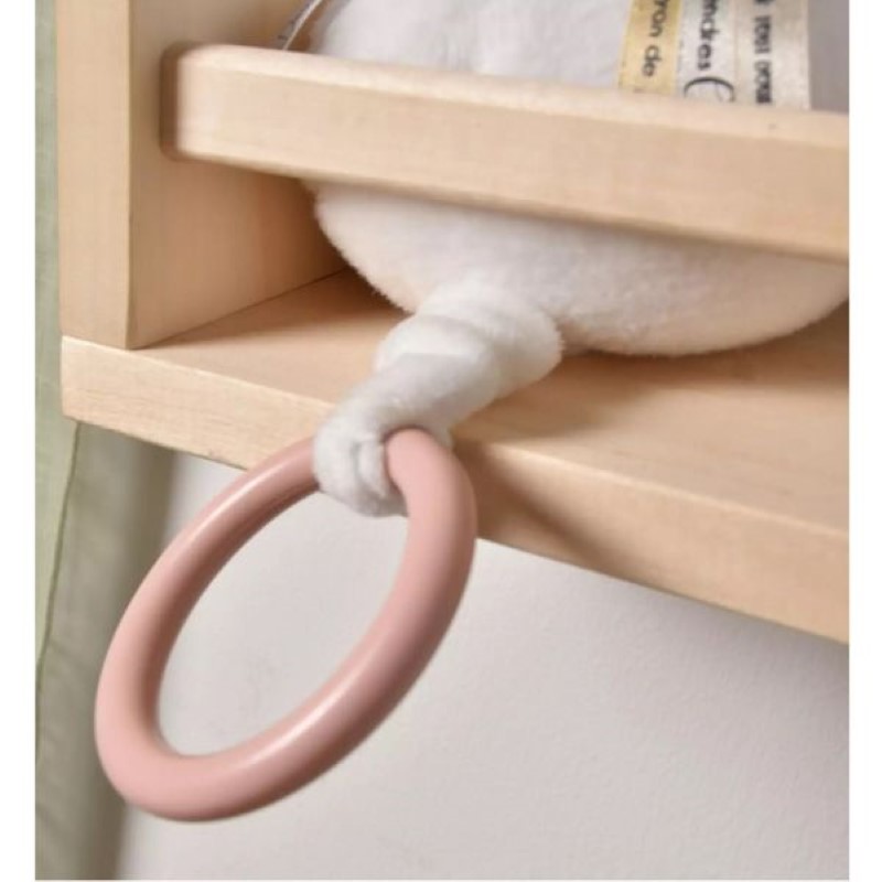 Освен като средство за успокоение, играчката има и декоративна функция. Елегантният ѝ дизайн и фините бродерии я правят стилен акцент в бебешката стая, а възможността за закачане към легло или количка я прави практична за ежедневна употреба.