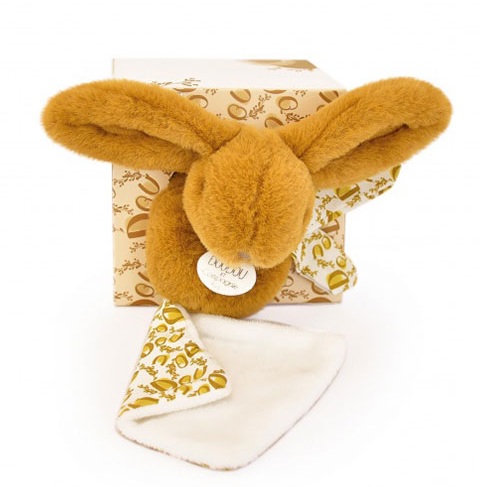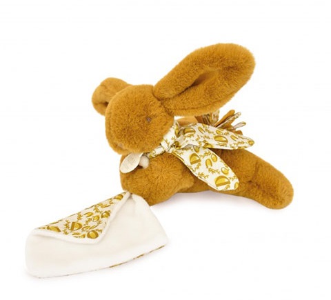 Плюшено зайче с кърпа за гушкане 16 см, жълто, Doudou