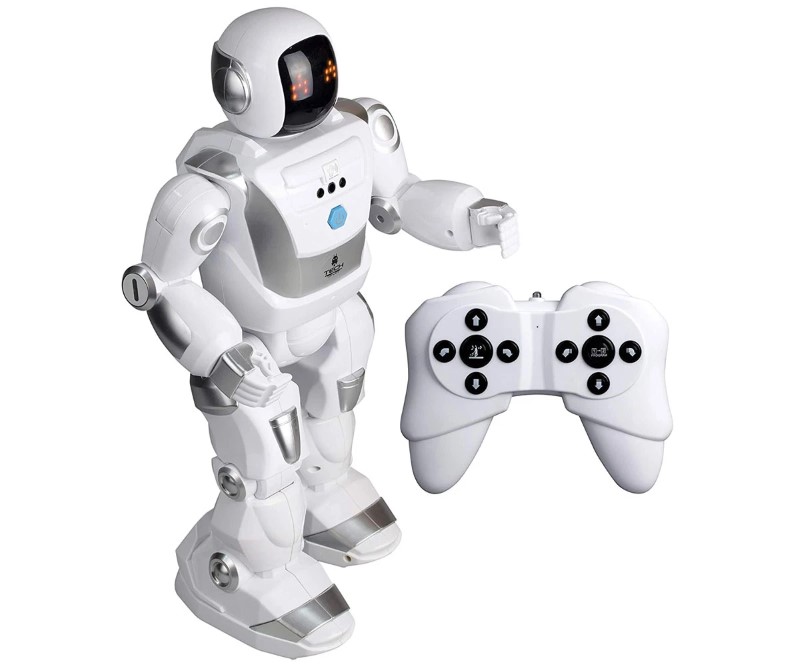 Програмирайте си робот, който може да се движи във всички посоки, да се плъзга, да танцува и е оборудван с всякакви страхотни звукови ефекти. Роботът може да изпълнява до 48 програмируеми действия подред. Използвайте напълно функциониращо директно дистанционно управление, за да контролирате движенията му или използвайте вграденият сензор за движението с обикновен жест на ръка. Има LED осветени очи с пет различни изражения на лицето.