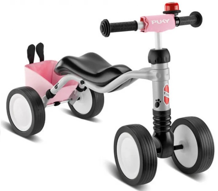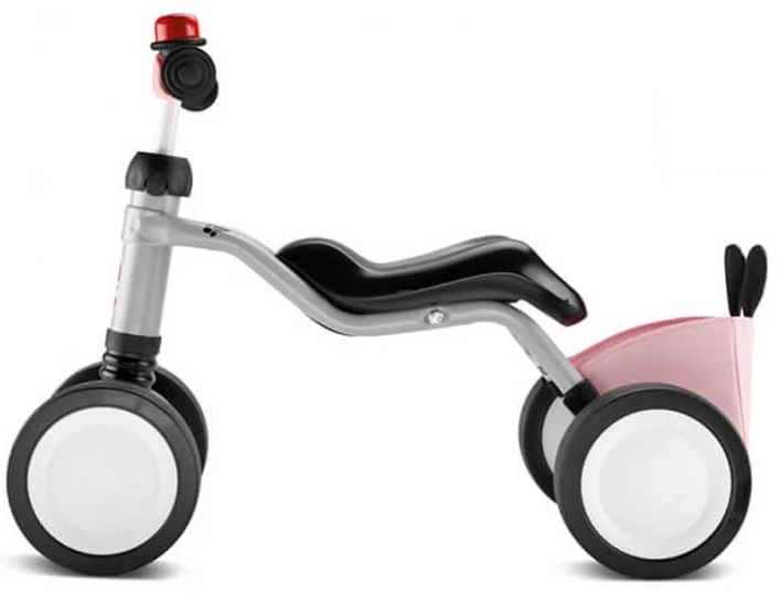 Детското колело за яздене с четири колела от серията PUKY Wutsch Bundle колело за яздене с четири колела е нещо, което трябва да има всяко малко дете. Колелото е оборудвано с чанта прикрепена на рамката в розов цвят с дизайн на зайче със сладки ушички. Това ще позволи на вашето дете да слага в нея както любимите си играчки, така и бутилка за вода. А за още по-голямо забавление, това колело за яздене има и звънец на кормилото.