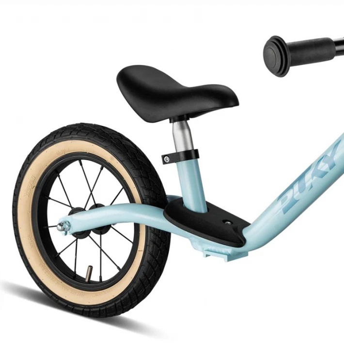 Когато става въпрос за каране на колело на всякаква повърхност и добро сцепление, пневматичните колела все още превъзхождат всяка друга технология. Още повече, че комфортът и оптималното управление са съществени предимства на пневматичната гума, която може да се адаптира чрез регулиране на налягането на въздуха в зависимост от личните предпочитания на децата. Освен че са пневматични, гумите на това колело за баланс Puky са със спици и бежов кант, завършващ дизайна.