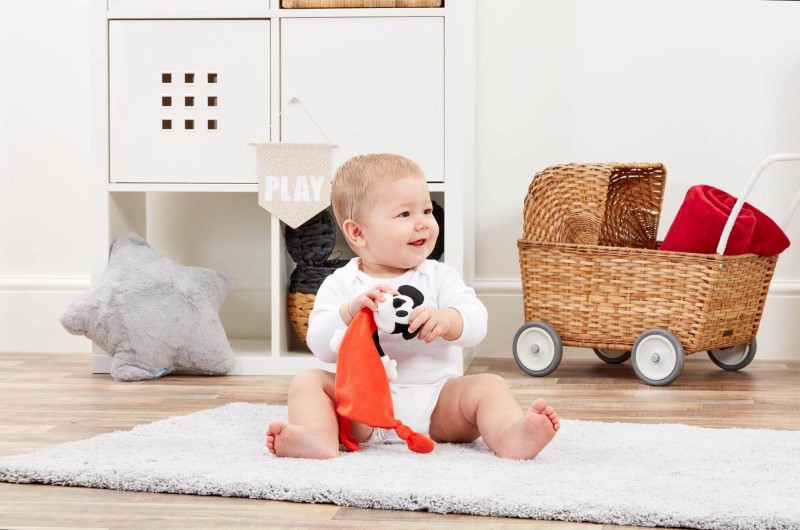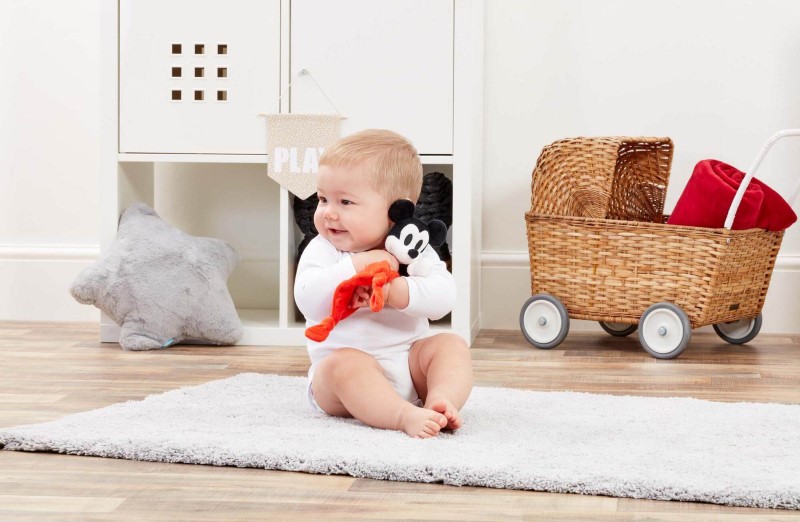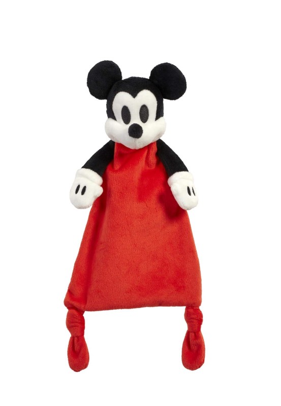Яркото червено одеяло, съчетано с възли на ъглите и емблематичните черни уши и нос на Мики, насърчава сетивата на децата, както и развитието на фините двигателни умения при най-младите фенове на Disney.