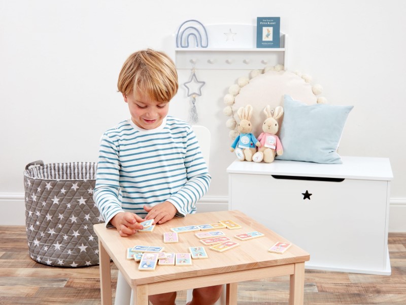 Играйте и се учете със забавната игра на домино в компанията на Зайчето Питър и неговите приятели от колекцията Once Upon a Time.