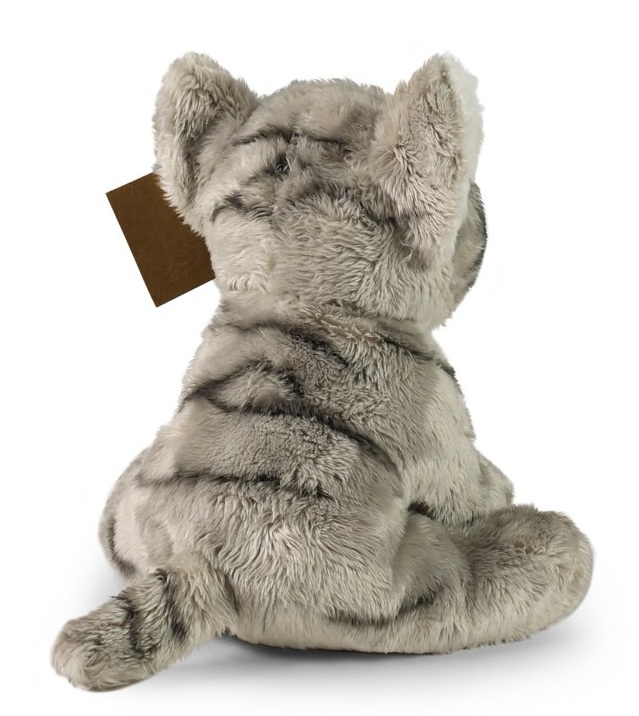 Плюшено сиво коте, ръчно ушито от висококачествен, мек плюш, което го прави реалистично и желано от децата.