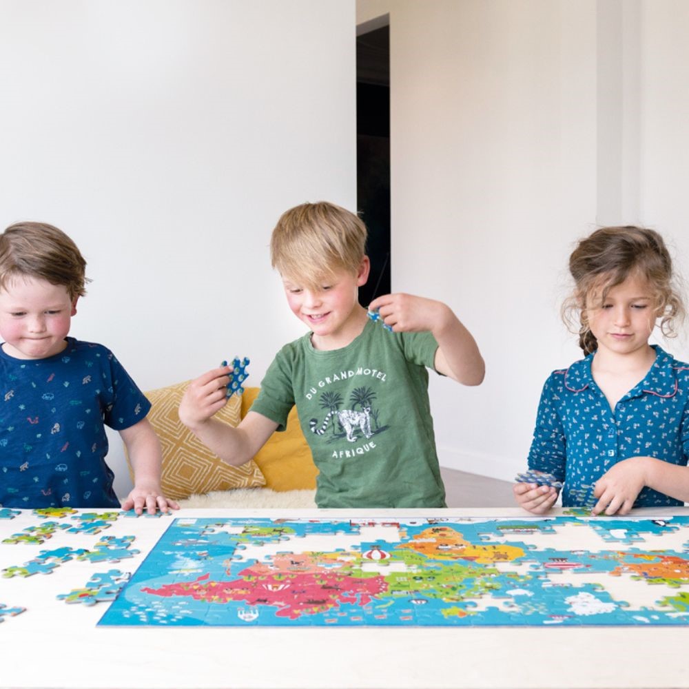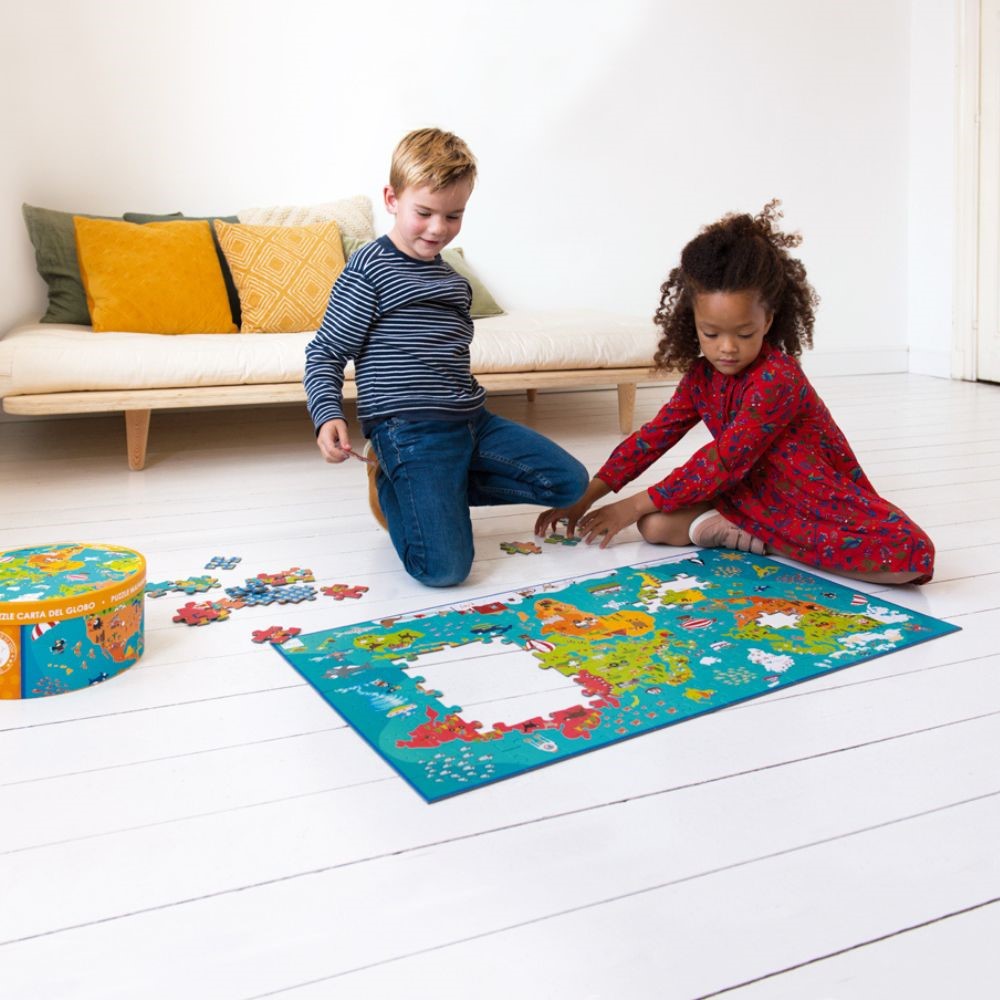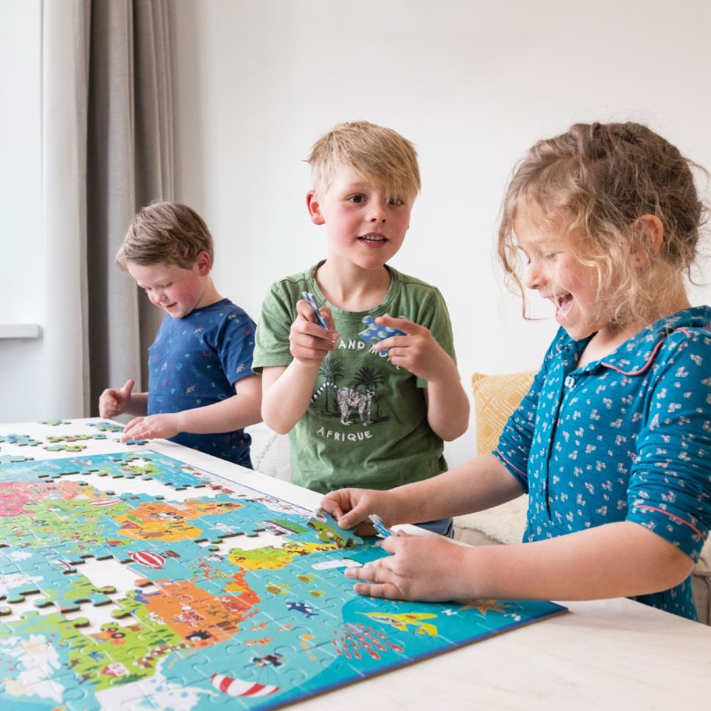 Представете си колко добре ще стой този голям пъзел с картата на света в детската стая на децата ви, само след като се постараят да го наредят.