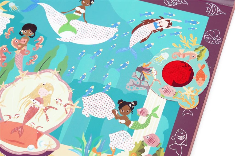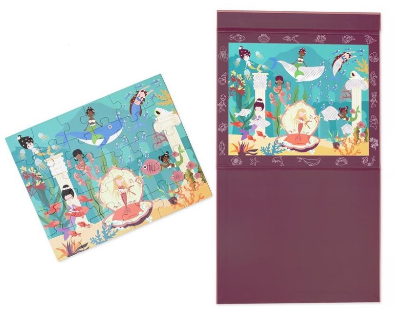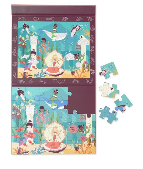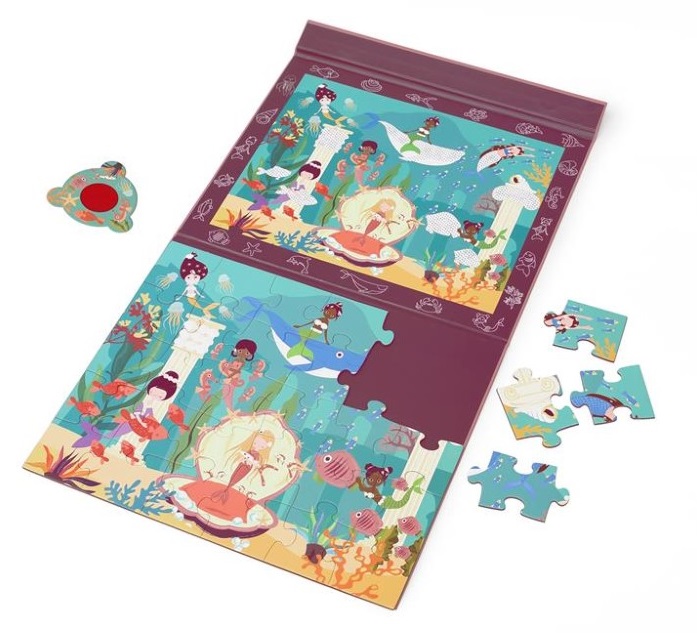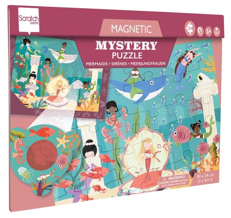 Този магнитен и мистериозен пъзел е специално създаден за развиване на умения за откриване и наблюдение. След като подредите пъзелът съдържащ 30 части, използвайте специалната лупа, за да откриете всички скрити тайни в подводния свят на русалките в картината!