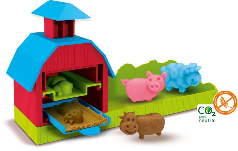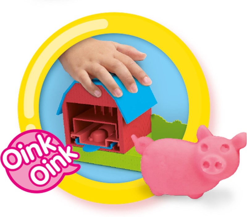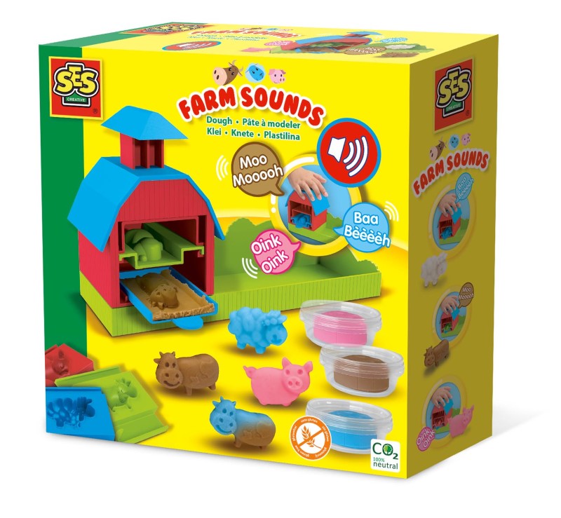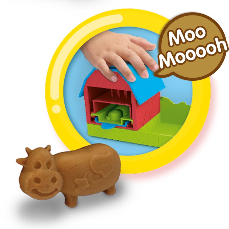 С помощта на силиконови калъпи, ще можете да си направите страхотна ферма с различни животни. За да вдъхнете повече живот на произведенията от тесто, ще е необходимо да натиснете покрива на фермата, за да чуете звука, който съответства на животното което създавате.