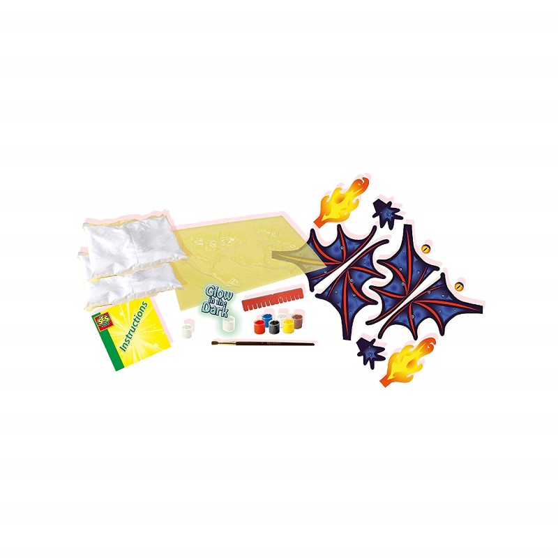 Този комплект децата сами ще могат да си направят цветни дракони от гипс. За целта трябва да разтворите сместа от гипса и да я изсипете в двете матрици. Изчакайте ги да изсъхнат и ги залепете, като им добавите и крилата. Оцветете дракона в любимите си цветове и му добавете блясък. С готовата фигурка, можете да украсите своята стая, както и да си играете.