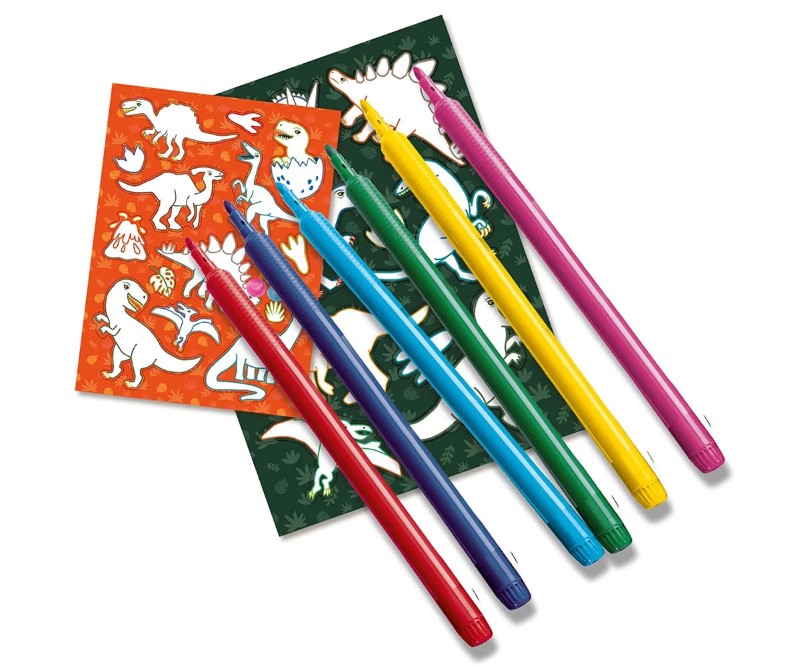Ярките и безопасни флумастери, включени в комплекта, буквално ще съживят динозаврите.