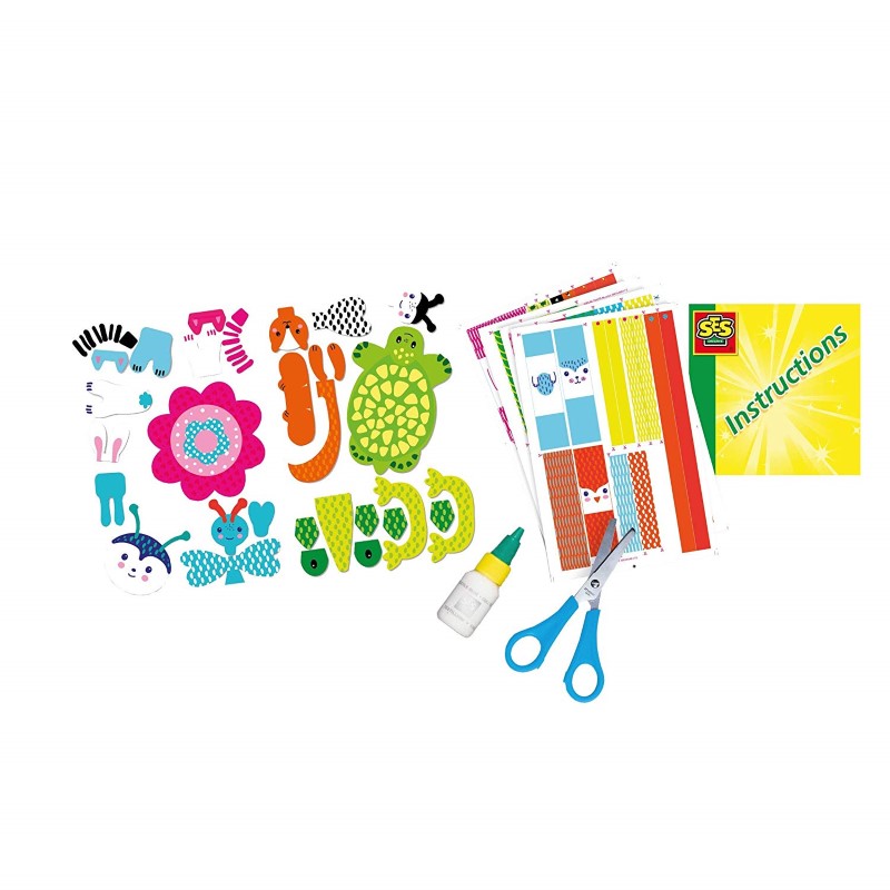С този детски творчески комплект децата ще могат сами са си изработят различни животни и цветя с предварителни отпечатаните хартиени ленти. Следвайте ръководството и изрежете и сгънете правилно хартиените ленти. Комплектът съдържа материал за изработването на 11 фигури. Този комплект стимулира творчеството и развива фините двигателни умения на децата.