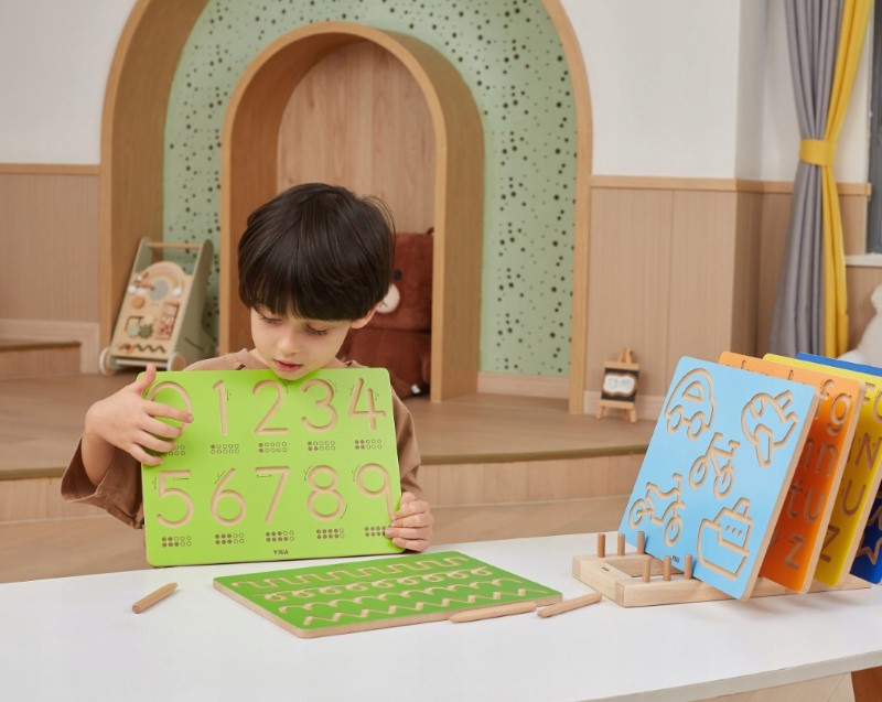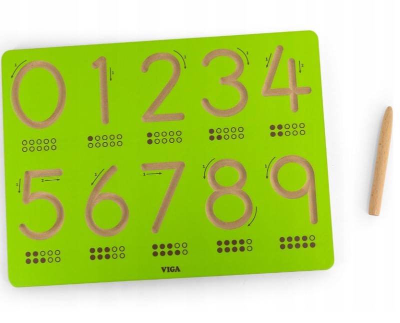 Сетивна дъска за изписване на цифри от VIGA, което е идеален вариант за децата да тренират ръцете си преди да се научат да пишат. Деликатно гравираните и извити жлебове я правят идеална за децата да контролират движението на ръцете си и да изградят мускулна памет чрез многократно проследяване.