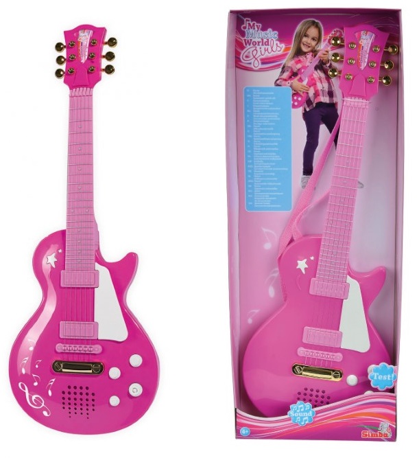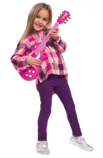Тази рок китара от серията My Music World е подходяща за малките момиченца, които имат интерес към музиката. Със своите 6 метални струни, китарата е идеална за първите мелодии и ритми, които детето ви ще изсвири. Китарата е с дължина 56 см и е подходяща за деца на 4 и повече години. Работи с 2 x 1,5 V батерии (LR06), които са включени в комплекта.