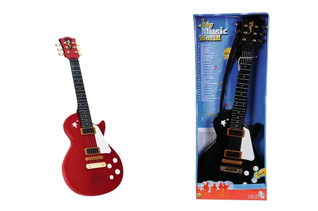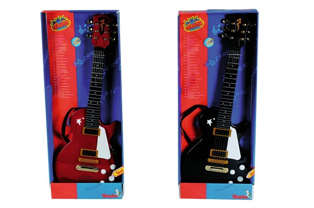 Станете истинска рок звезда с тази електрическа китара с автентичен дизайн и истински метални струни. С нея можете да се упражнявате и да изпълните първото си соло изпълнение. Китарата работи с 2 х АА батерии. Налична е в два цвята: черен и червен. Цената е за 1 брой.