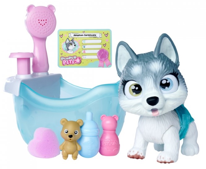 Игралният комплект Pamper Petz ще позволи на децата да се грижат за едно малко кученце „Хъски“.