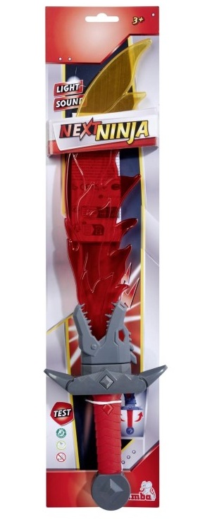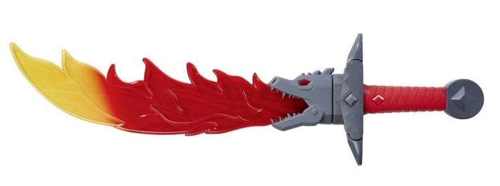 Със светещия драконов меч, няма как да останете незабелязани. С такъв меч няма да се страхувате от врага. Той има яркочервен дизайн в стил драконов пламък. Мечът с дължина 53 см, при натискане на долния бутон има светлинни и звукови ефекти. Ако натиснете горния бутон, сребърните странични „шипове“ над червената дръжка ще се разгънат.