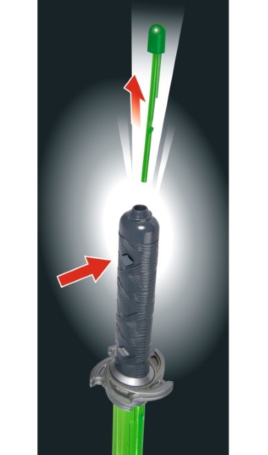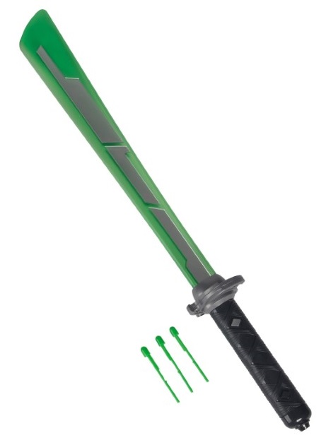 Този нинджа меч е със светещи и музикални ефекти и към нега са включени и 3 стрели, които се изстрелват при натискането на малкият бутон на дръжката. Всеки малък герой има нужда от нинджа меч.
