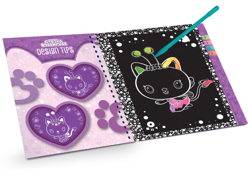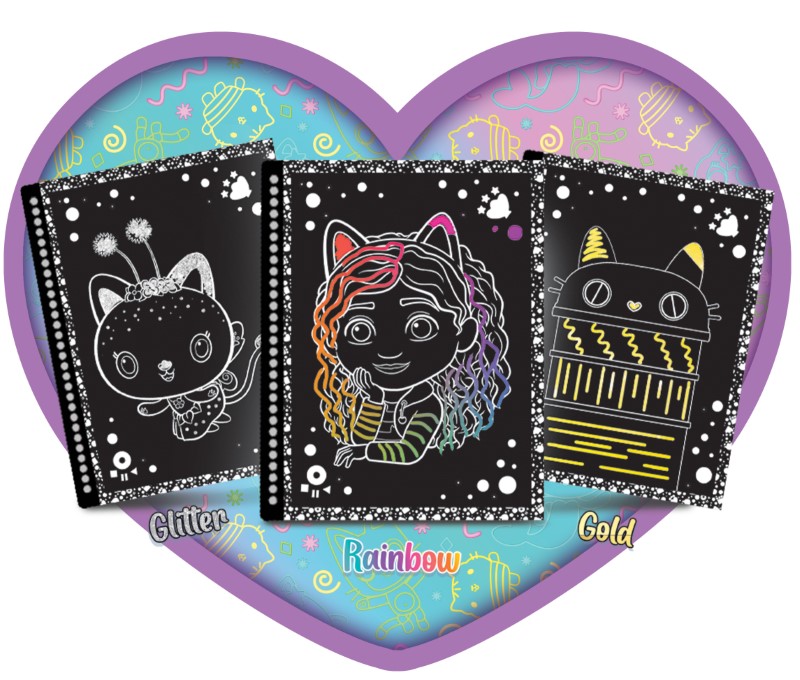 Открийте магията на цветовете, благодарение на тази скреч книжката в компанията на героите от Gabby’s Dollhouse.