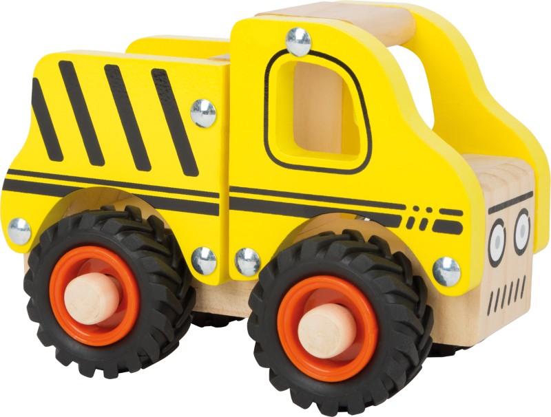 Това дървено камионче е изработено от FSC® 100% сертифицирана дървесина и ще транспортира най-важните строителни материали до следващата строителна площадка. Самосвалът е с гумирани колела и подходящ профил за неравен терен и може да се движи безопасно и тихо през детската стая. Компактно превозно средство, което никое дете няма да иска да остави!