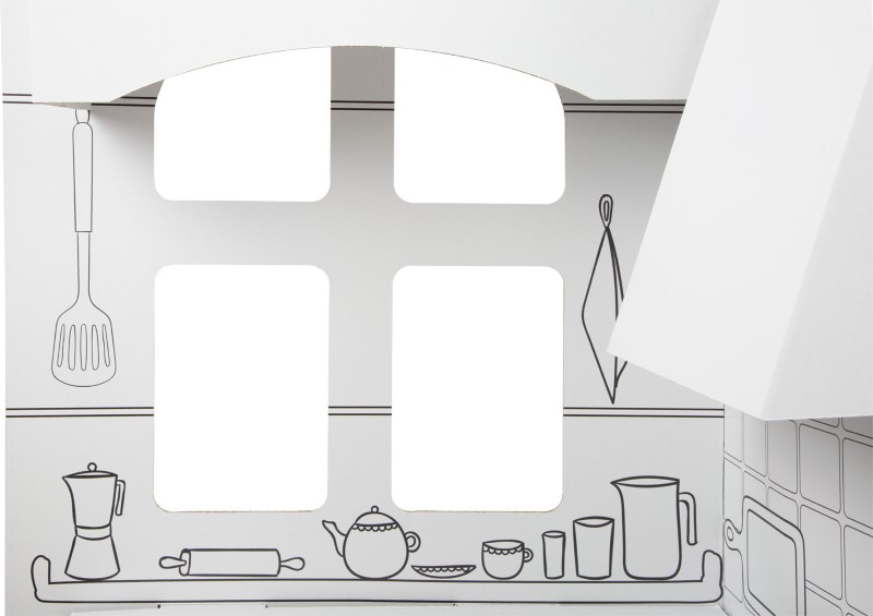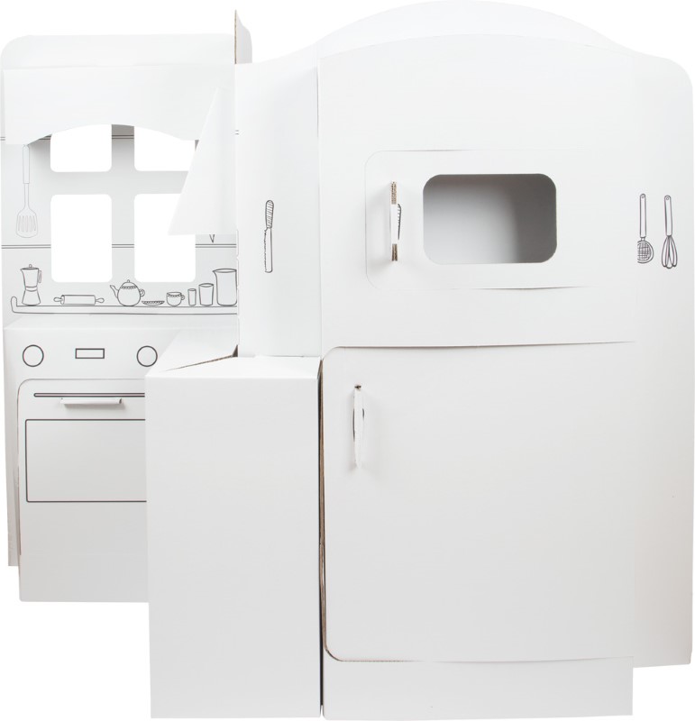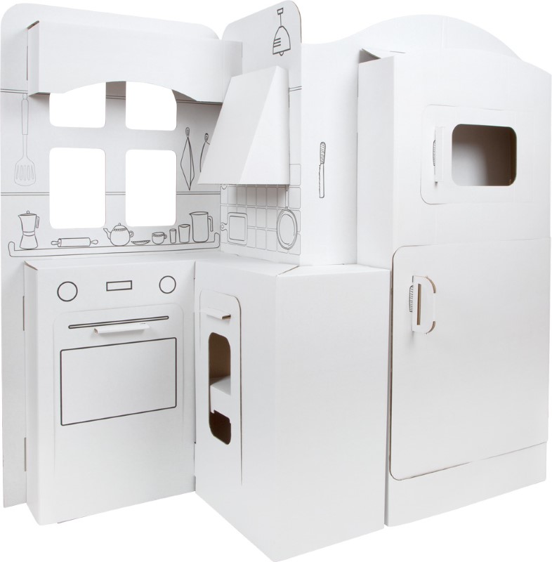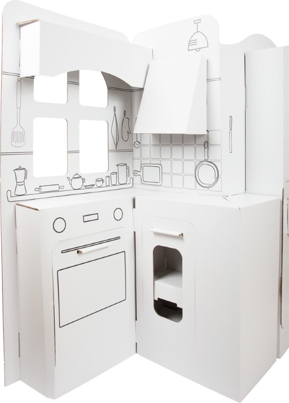 Тази кухня за игра е изработена от здрав строителен картон и предлага на малките и амбициозни топ готвачи място на което да развихрят своето въображение и да приготвят вкусни ястия за своите кукли, родители и приятели!