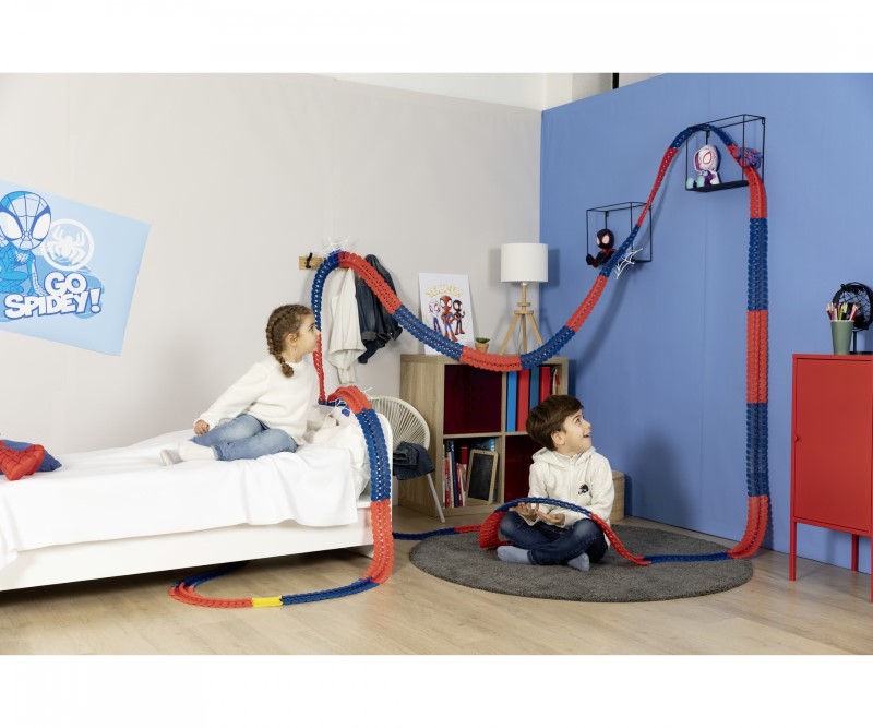 Предлага се с ексклузивен аксесоар: мрежата Spidey е монтирана на фиксираща скоба, така че е възможно пистата да се фиксира към много обекти.