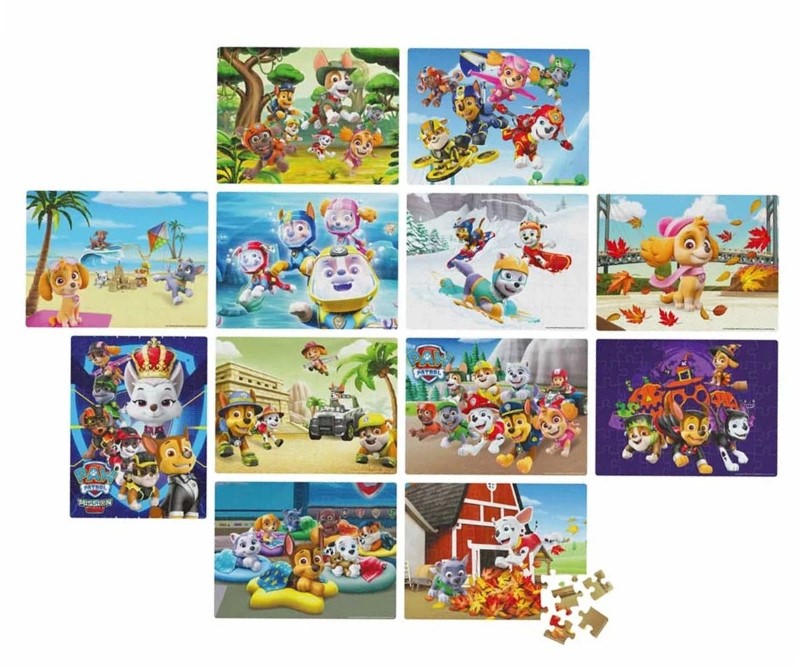 Пъзелите са с различни размери и включват любими герои като Chase, Marshall, Rubble, Zuma, Everest, Skye. Всяко изображение представя сценка от техните спасителни мисии.