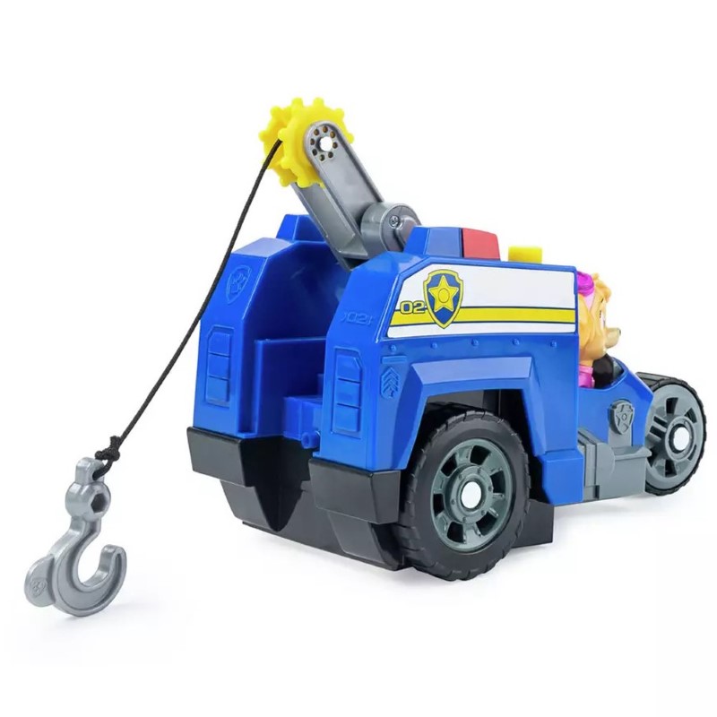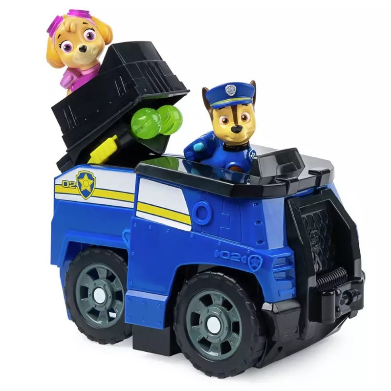 Удвоете спасителните акции на Paw Patrol със Скай и Чейс с автомобила Split-Second! Това превозно средство 2 в 1 се превръща в две спасителни превозни средства с натискане на бутон! Поставете Чейс и Скай в превозното средство и натиснете бутона със значка. С трансформирането на Split-Second второто превозно средство се изстрелва напред, а отзад изскача 3-колесно превозно средство с работеща спасителна кука! Кабината на полицейския джип дори се повдига, за да изстреля снаряди! Комплектът включва: фигурка Чейс; фигурка Скай и трансформиращо се превозно средство