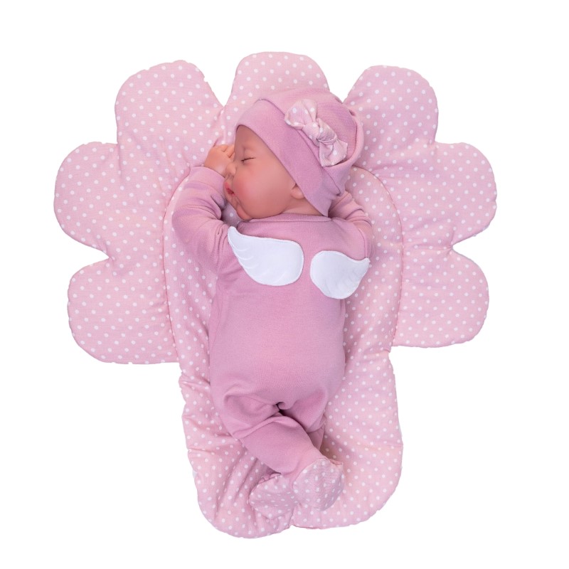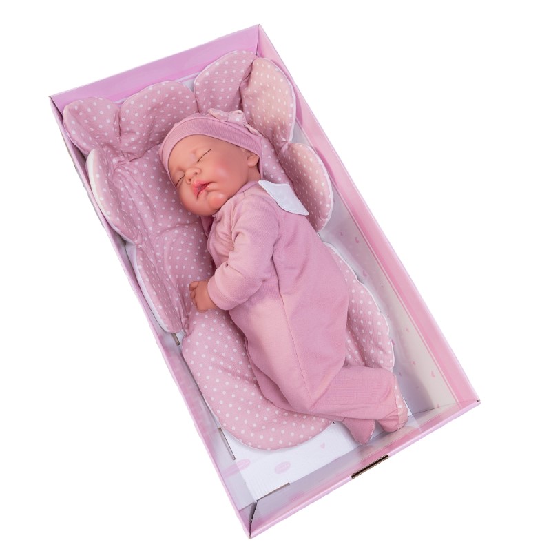Това е Луна! Едно сладко новородено бебе, което спи като ангелче върху меката й постелка във формата на цвете. Поставете одеялото и в нейната кутия и то ще случи като креватче.