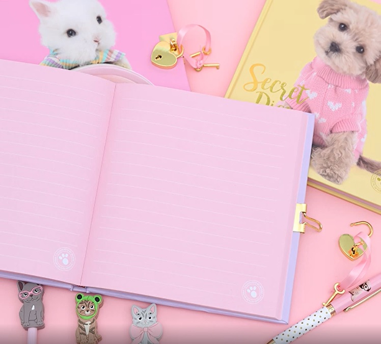 Всички дневници на Studio Pets са подходящи за всички любители на животните и се предлагат с щампа на сладко куче, коте или зайче. Те са със твърди корици, нежни цветове и имат цветна хартия от вътрешната страна.