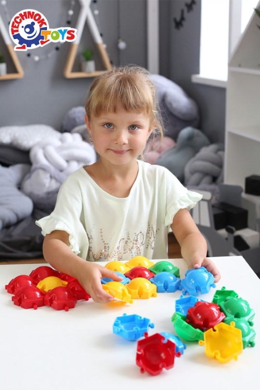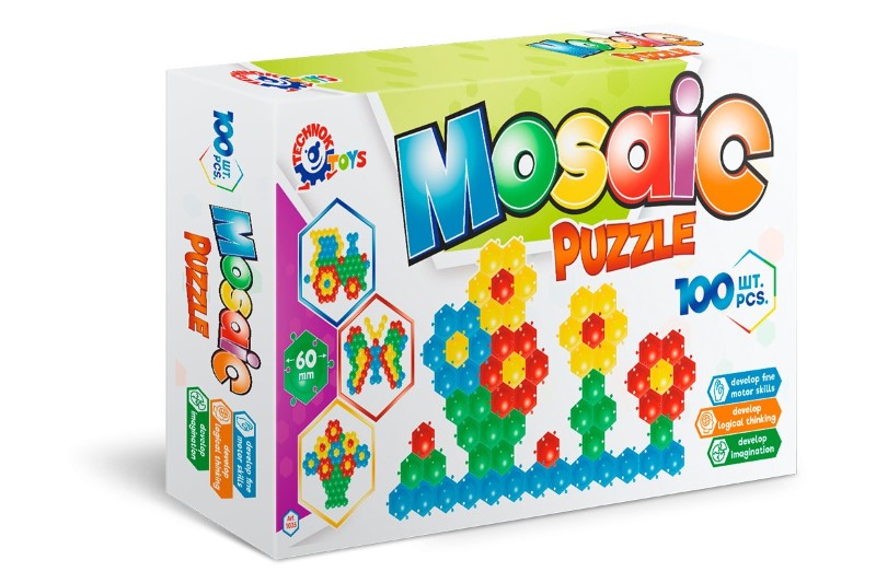 Тази мозайка-пъзел се състои от 100 цветни шестоъгълници, от които детето може да направи всякакви форми и модели подреждайки ги на земята. Играта развива детския художествен вкус, сръчността, координацията и подвижността на ръцете.