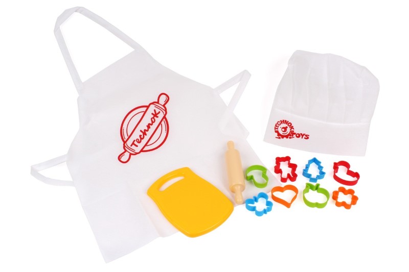 С този игрален комплект детето със сигурност ще се почувства като професионален готвач, тъй като комплектът включва бяла престилка и истинска готварска шапка. Най-хубавото е, че комплектът може да се използва и за истинско печене, а в помощ на майките добавихме рецепта за вкусни сладки.