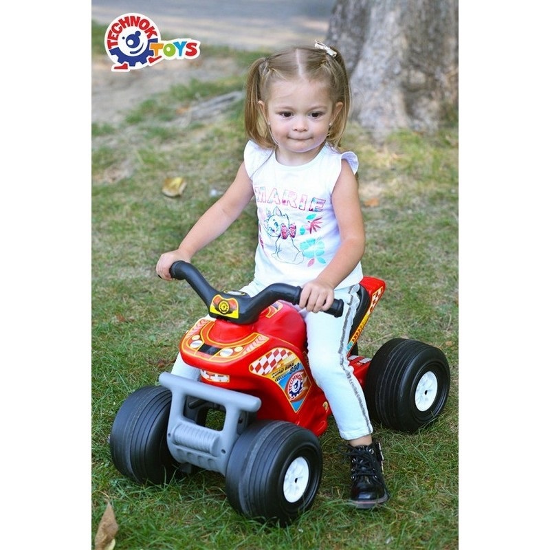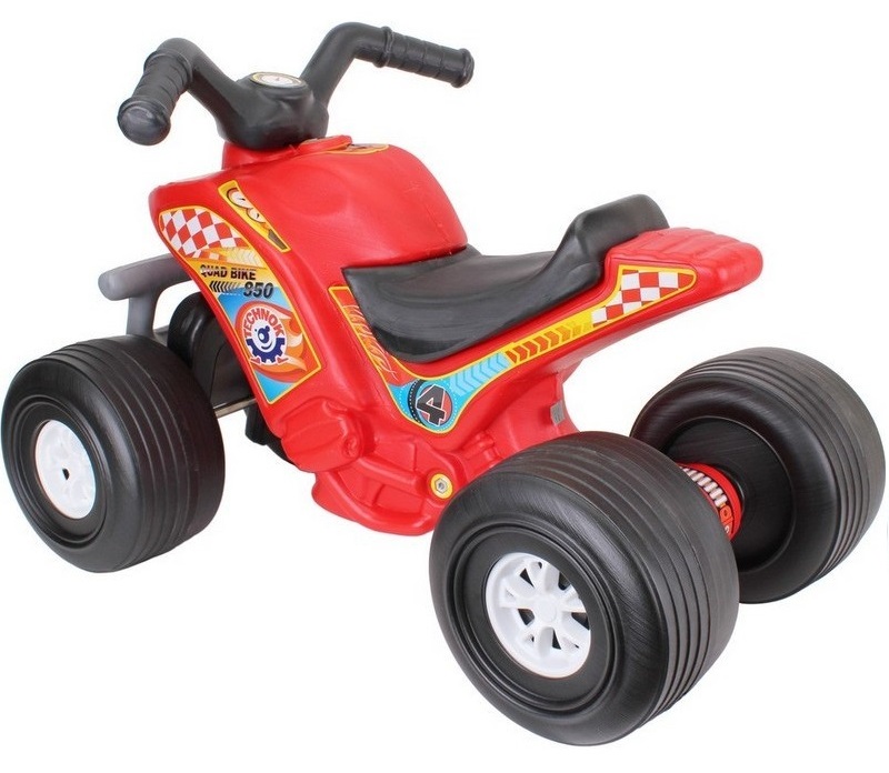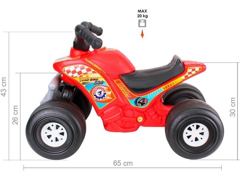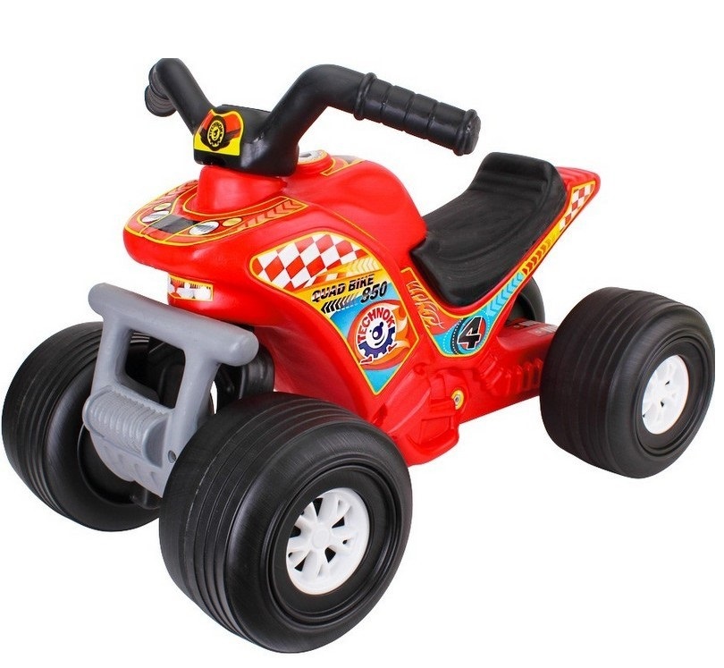 Всяко дете ще се радва да притежава това страхотно АТВ без педали, с което ще преодолее всички препятствия по пътя и ще се научи да не се страхува от трудностите и ще намери решения на създалите се ситуации по пътищата. То е изработено от висококачествена пластмаса, има удобна седалка и въртящ се волан. Подходящо е за по-малки деца, които все още усвояват техниките на баланса, преди да се качат да карат колела. Тази количка се движи бутайки я напред-назад с краката, което помага за тяхното развитие и мускулатура. Идеална е за дългите разходки по парковете и детските площадки.