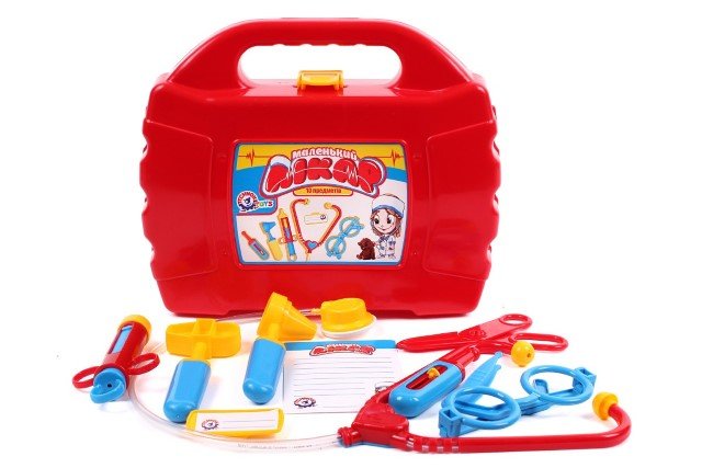 С този комплект всяко дете ще се почувства като истински лекар. В комплекта са включени 10 от най-популярните инструменти като: спринцовка, термометър, стетоскоп, чукче и други. Децата също ще харесат и значката, формуляра за рецепти, както и очилата, с който ще изглеждат като истински доктор.